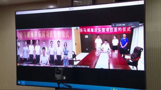 8月13日,湖滨新区采取线上“云签约”方式,与连云港海州湾海洋乐园有限公司正式签订骆马湖海洋乐园项目合作协议。区党工委副书记、管委会主任陈磊,区党工委副书记臧涛出席签约仪式。区党工委委员、管委会副主任张杰主持签约仪式。江苏骆马湖旅游集团董事长王海龙与连云港海州湾海洋乐园有限公司总经理刘恩昌代表双方签订合作协议。