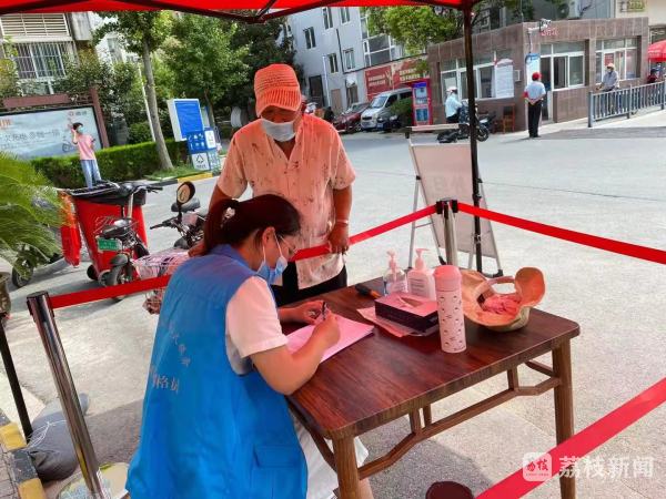 在阳光华城小区,记者看到居民们都自觉地佩戴好口罩,提前打开苏康码及行程码,一群戴着红袖章的身影一直在忙碌着。虽然正值休息日,但小区进出口的疫情防控人员只增不少。社区工作人员告诉记者,社区防疫队伍中,除了有党员楼栋长、网格员、志愿者、物业公司、业委会人员,还有不少社区内的在职党员放弃休息时间,主动加入到疫情防控的队伍中来。