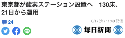 《每日新闻》称,东京都政府将都涩谷区“儿童城”建筑物改造成大规模“供氧站”,以暂时收容居家疗养的新冠肺炎患者。报道称,“供氧站”预计21日投入使用,东京都政府正在紧急招募医生和护士。