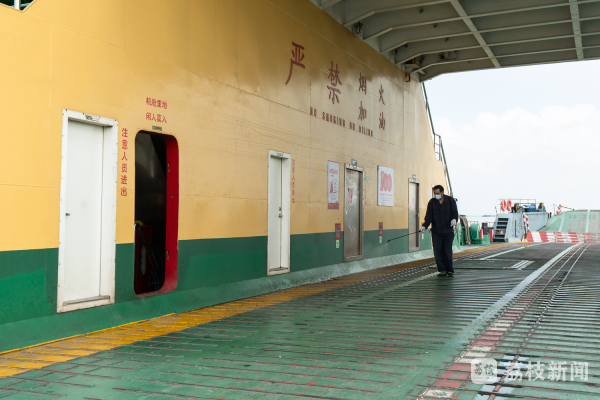 常通汽渡安全运营管理科科长陶利中说:“首先我们从内部人员、环境、设施方面都做好了相关的疫情防控工作,包括渡船上我们也做好类似的防控工作。特别是我们渡船上集中的旅客休息室、休息区现在都封闭,暂时停止使用了,防止旅客聚集。还有一个我们对进出口的车辆、人员做到及时的查验和登记,还有包括测温等防控工作。”