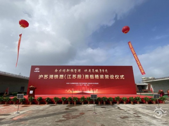 提梁、运梁、架梁…今天(8月17日)上午,在中铁十九局集团沪苏湖铁路工程站前Ⅲ标吴江梁场,随着首榀箱梁成功架设,标志着沪苏湖铁路工程建设迈出了关键性的一步,线上工程施工进入新阶段。沪苏湖铁路建成后,将进一步缩短苏州至上海和浙江的行程时间,对实现沪苏同城化有着重要意义!