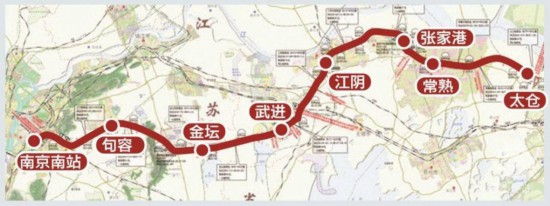 南沿江城际铁路,连接江苏省南京市、镇江市、常州市、无锡市、苏州市,是沪宁通道的第二条城际铁路。线路起于南京南站,止于太仓站后利用沪苏通铁路进入上海枢纽,最高设计速度350千米/小时。