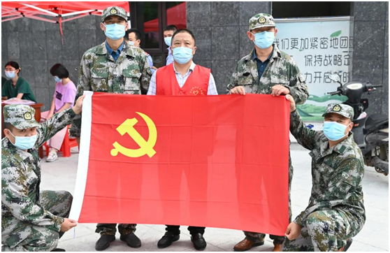 连日来,江苏省淮安市广大退役军人和正在休假的现役军人,积极响应“两在两同”号召,在卡口值勤、核酸检测,扫码测温、场所消毒、防疫宣传等工作中迎难而上、冲锋在前。似火骄阳下,一个个汗流浃背的平凡身影,令人感动,心生敬意。
