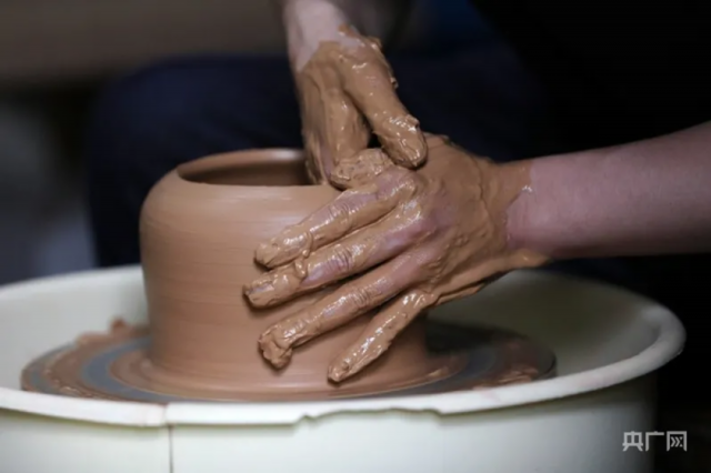 拉坯、修坯、刻花、上釉,再经过1200度以上的高温烧制,一件釉色青翠莹润的青瓷便在周明明的手中烧制出来。