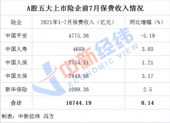 截至目前,A股五大上市险企前7月保费收入均已出炉,合计达16767.89亿元,同比微幅增长。