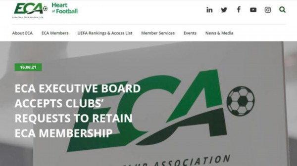 欧洲俱乐部协会官方表示,执行董事会同意以下俱乐部将在当前的 2019-23ECA会员周期内保留其会员资格:AC米兰、阿森纳、切尔西、马德里竞技、国际米兰、利物浦、曼城、曼联和托特纳姆热刺。