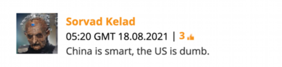 “中国聪明,美国愚蠢。”↓