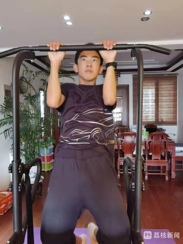 每天早晨八点多起床,苏行之开始了“十八般武艺”的训练,他还给记者分享了一组锻炼口诀:“俯卧撑二十个起,俯卧背起来一组,侧卧支撑能坚持,引体向上约五六,小跑客厅绕几圈,乒乓对墙也能打,宅家运动花样多,有事没事晒肌肉。早晚练习不偷懒,健康生活打一百。”