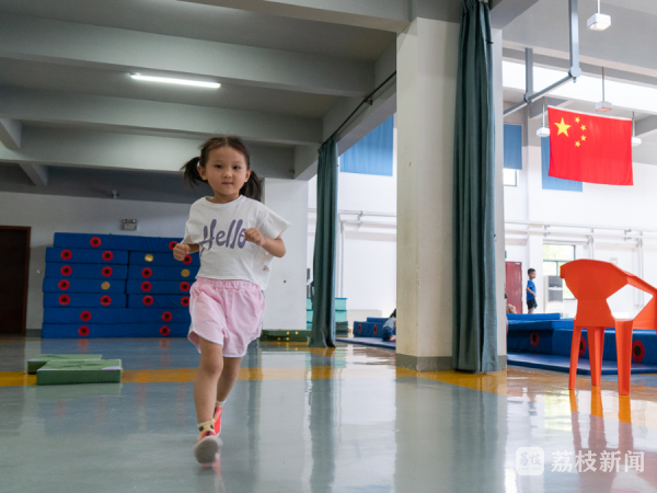 8月9日上午9时30分许,常熟市体育运动学校陆上训练馆内,年仅3岁的晋一宸正在埋头跑步。