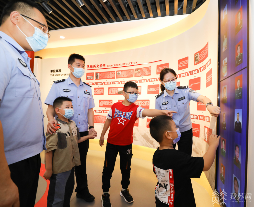 我苏网讯 2021年8月18日,来自张家港出入境边防检查站民警家庭的首批警娃,一起走进该站刚建成的警史馆,通过了解边检工作的发展历程,满足了长期以来对父母繁忙工作的好奇心,同时也上了一堂生动的国防教育课。