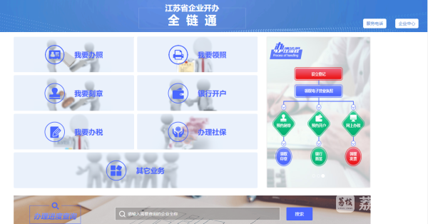 据介绍,“全链通”平台是一个涉企事项的网上集成办理平台。企业登记、公章刻制、申领发票和税控设备、员工参保登记、住房公积金企业缴存登记等涉及6个部门的事项均可依托该平台实现“一网通办”,全程闭环,用数据推送取代企业跑腿。申请人通过 “全链通”平台完成企业登记后,使用电子营业执照登录可同步申请刻制公章、预约银行开户,并使用预约银行开户生成的银行账号在线办理涉税事项,各部门通过实时信息传输,同步受理申请事项并进行审核,最大限度地促进信息资源共享和各服务环节的整合优化,实现“一点接入、全网通行”的一条龙办理,大幅提高企业开办的服务效率。