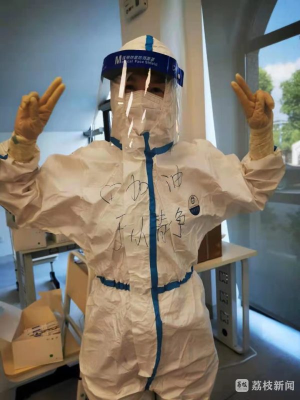 于小静也是这次援宁的医护人员之一,8月10日板浦镇镇长沈剑峰对其家属进行了慰问。于小静的丈夫王永结是板浦镇中正卫生院院长,连日来也一直奋战在疫苗接种、核酸检测一线,“接到上级要抽调一部分人到南京支援核酸检测采样的通知后,虽然面对家里孩子无人照顾的难题,于小静也没有任何犹豫”,王永结说:“我们都是共产党员,在国家和人民需要我们的时候,为了人民群众的生命安全和健康,我们就是应该这样做”。 王永结给记者看了于小静发来的照片,穿着厚重防护服的于小静手比着“耶”字,防护服上写着她的名字,另一张她的自拍照脸上则布满了防护口罩的压痕。