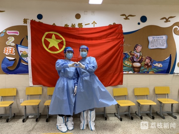 7月下旬,南京启动全员核酸检测,瑞金路学校成为检测点之一,我也加入抗疫一线,穿上厚厚的防护服,为居民引路,帮大家录入核酸检测信息。志愿服务期间,我遇见了不少班上的孩子,当他们发现眼前的“大白”是老师时,既惊讶又激动。看着他们保持一米距离,礼貌的手持身份证,核酸采样努力张大嘴巴配合医护人员工作,离开时不忘记说声“谢谢”,我真为孩子们自豪。今年暑假,老师和你们以这种特殊的方式相见,这场抗疫,你们都是老师心中的小英雄。
