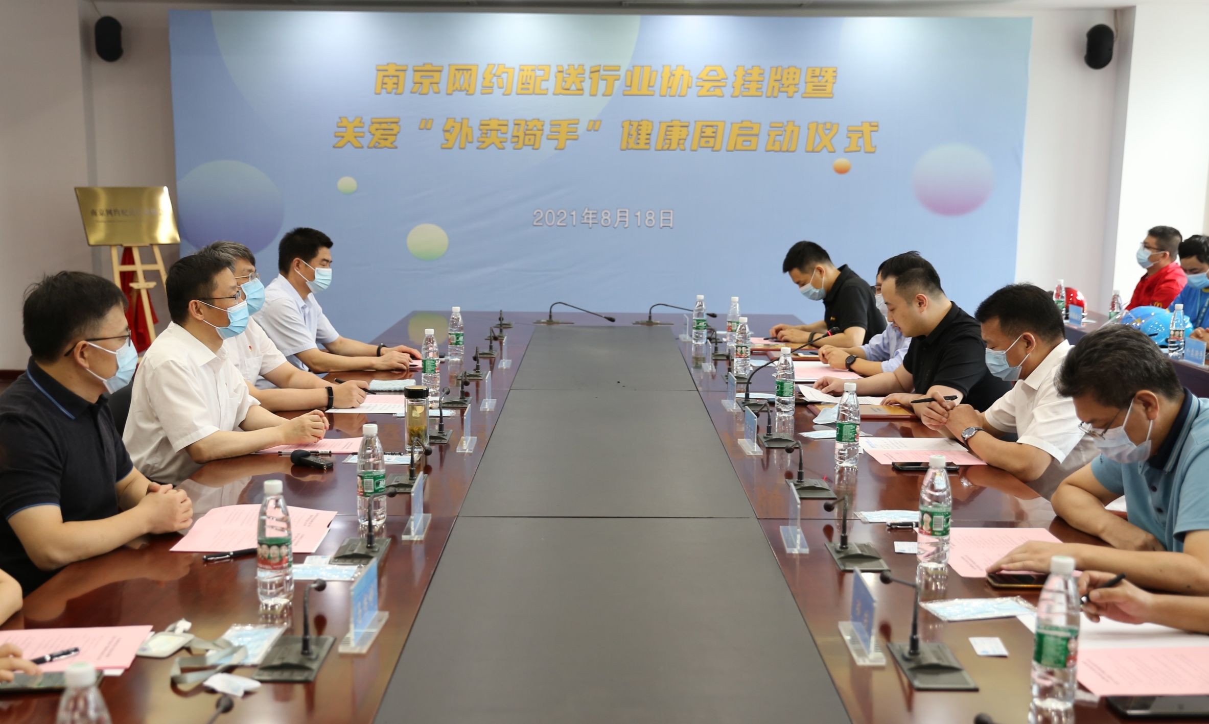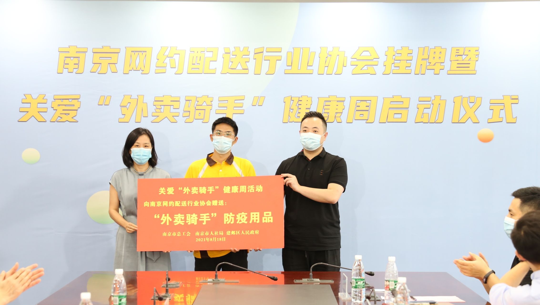 8月18日,全国首家网约配送行业协会在南京成立,南京市人社局党组书记、局长刘莅,市总工会党组书记、副主席焦勇共同为协会揭牌。