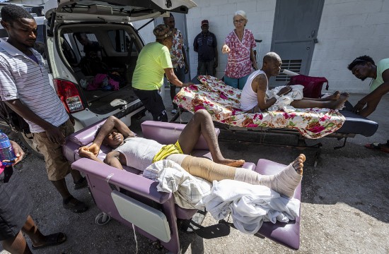 报道称,海地西部医院在地震中遭受到严重损害,一些医院已经倒塌。一位在海地从事国际援助的人士巴斯·格林表示,其所在地区的医院已经全部倒塌损毁,手术室无法使用,现在正是飓风季,如果使用帐篷,大风也会把它们卷走。目前,海地现有的医院处于超负荷运转状态,并且迫切需要医疗设备。海地媒体Haiti 24报道称,17日和18日海地有2名医生遭遇绑架,其中一位是骨科医生,而绑架者身份不明。据报道,海地多数地震伤者为四肢骨折和头部受伤。