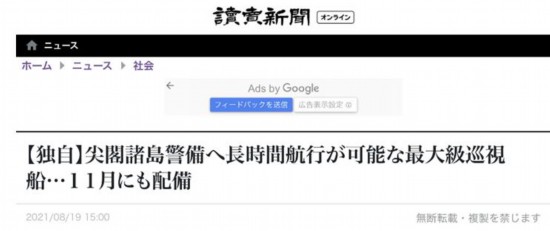 同时,《读卖新闻》还声称,日本政府计划在2024年之前将全国现有的69艘巡视船增加至77艘,以应对钓鱼岛附近海域紧张局势等问题。