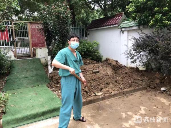 发热门诊改造前,区域内路面上留有较多泥土,那时候的雨水天气多,雨后路面泥泞湿滑,注意到这个问题后外科青年医生张志友在完成发热门诊日常工作后,主动承担起路面清洁工作。