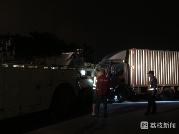 当晚23时左右,浦口城管科工园中队执法队员巡查至玉山路,发现路边停了大量厢式货车,形迹可疑。根据工作经验,执法队员觉得事有蹊跷,立即上前检查。当询问驾驶员车厢内装的是什么时,驾驶员支支吾吾,不愿配合。在执法队员的强烈要求下,通过检查车厢发现里面全部是建筑垃圾,且无法提供相关手续,涉嫌未经核准运输建筑垃圾。对此,执法队员欲对涉事车辆进行暂扣,刚开始驾驶员情绪激动很不配合,执法队员及时对接渣土中队到场支援,并联系交警部门协助执法。