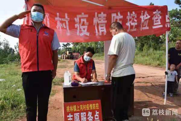 在西石埠村卡口,退伍军人党员李前利在自己把好卡口执勤关的情况下,有序组织群众参加核酸检测演练,并组建了全镇第一个青年志愿者服务队,招募了10名大学生志愿者参与到卡口执勤工作中。东石埠村退伍军人党员马国义有着近20年党龄的他在工作中发挥“头雁”作用,迎难而上,体现出退伍不褪色的军人本色。他带领工作人员细致查验途经车辆,做好人员信息登记、体温检测、宣传教育等工作。在岗执勤的其他6名同志,他们把党史学习教育的成果转化为疫情防控的强大动力,为疫情防控筑起牢固防线。白天烈日炎炎,汗流浃背;夜晚暑气未消,蚊虫叮咬,他们毫无怨言,毅然“硬顶上”。 东海县桃林镇人口密集,各村防控点都急需人手,退伍军人党员逆行而上的身影筑牢了疫情防控一线,他们努力守护着家园,为疫情防控作出了应有的贡献。