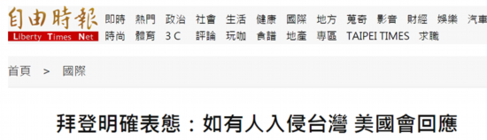 拜登此话一出,立即被台湾“中央社”等多家台媒疯炒,台湾“中央社”声称,这是拜登1月底上任以来,对“防卫台湾”作出最清晰的表态。