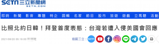 狂炒美国国安顾问沙利文在白宫媒体简报会上强调 “对台承诺坚实”后,今日(20日) 一大早,台湾“中央社”等多家台媒又嗨了,纷纷报道美国总统拜登19日在接受美国广播公司公司(ABC)专访中提到的话,拜登宣称阿富汗情况不同,且美国一向信守承诺,若任何人侵略北约,美国会做出回应,对日本、韩国、台湾做法也一样云云。