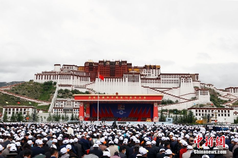 8月19日上午,西藏各族各界干部群众2万多人欢聚在布达拉宫广场,热烈庆祝西藏和平解放70周年。中共中央总书记、国家主席、中央军委主席习近平在贺匾上题词“建设美丽幸福西藏 共圆伟大复兴梦想”。今天的西藏,人民生活水平全面提高,贫困县全部脱贫摘帽,基础设施加快完善,生态安全屏障进一步筑牢,呈现出一派生机勃勃的繁荣景象。