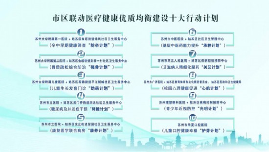 在苏州国家历史文化名城保护区“打造医疗高地 护航百姓健康”启动仪式的现场,记者了解到,这“十大行动计划”围绕着人民群众对优质医疗服务的需求,聚焦“一老一小”重点群体,姑苏区将继续借力各驻区医疗机构优质资源,大力推动“医联体”建设,进一步促进优质医疗资源下沉。
