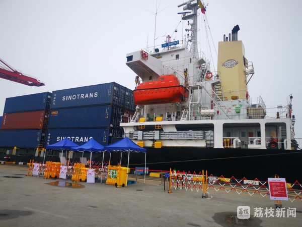 记者在现场看到,每个码头的船舶下船口都有3个帐篷。所有登上外轮作业的专班人员,在下船上岸的过程中,都要经过3道消杀关口。第一个帐篷“污染区”,身着防护服的作业人员在此经过全面消杀,然后将防护服脱掉,扔在旁边的黄色垃圾箱内。之后进入第二个帐篷“半污染区”,经过消杀之后,再进入第三个帐篷“安全区”进行一番消杀。如此,作业人员才可以登陆码头。“登船作业人员要专班管理,这部分人员工作期间,两点一线,工作区和居住点,专班车辆进行转运。”南京市交通运输综合行政执法局五支队八大队副大队长王永说。