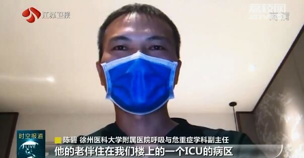 徐州医科大学附属医院呼吸与危重症学科副主任陈碧说:“他的老伴住在我们楼上的一个ICU的病区,他的老伴身体不好,同时基础疾病比较多,平时他老伴的身体都是这位老先生来负责照料的,现在他住在我们病区,每天见不到他的老伴,心理上是比较焦急的,非常挂念他老伴。”