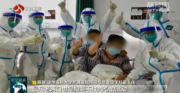 陈碧说:“当时的场景还是令我们非常感动的,老两口病房里面见面的时候,这位老先生情绪也是比较激动,先慢慢给他老伴整理一下头发,最后老两口也是抑制不住内心的激动,泪流满面,嘴里也不停地在念叨感谢你们徐医附院的医疗队,非常非常感谢你们。”