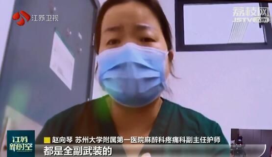 苏州大学附属第一医院麻醉科疼痛科副主任护师赵向琴说:“他们可能会看到这些叔叔阿姨都是全副武装的,一开始会有点害怕,这个时候我们会跟他们讲一些孩子们感兴趣的话题,比如说加菲猫,比如说小黄人这些。我们自己工作人员也会在自己的防护服上画一些可爱的卡通图像。”