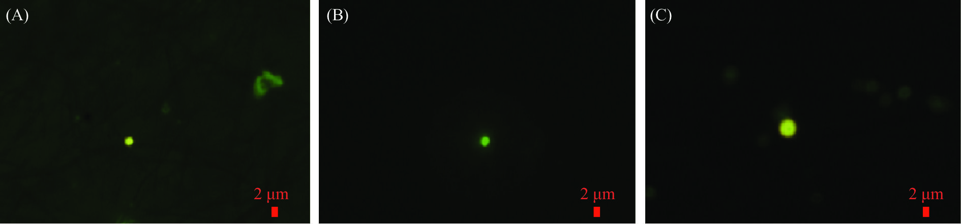 病区1采用雾化荧光微球模拟感染者呼吸,通过气溶胶颗粒浓度变化观察地点2走廊及地点3对面房间的扩散情况,结果如图2所示。在病区1,0.3µm的颗粒浓度显著增加并在上升到最高水平后保持稳定,0.5µm、1µm、2.5µm、5µm和10µm的颗粒浓度也保持稳定。荧光微球雾化后,走廊内的粒子浓度立即开始上升,并在达到最高值后保持不变。与病房1的变化相比,地点3即对面房间的颗粒浓度的峰值时间相对延迟。荧光微球雾化后20-40分钟,地点3即对面房间的粒子浓度开始上升。监测期间仅检测到峰值浓度,未检测到高浓度的平台期。在某些情况下,地点3即对面房间的颗粒浓度没有明显变化。同时,在上述3个地点采集的气溶胶过滤膜样品、气溶胶液体样品和拭子样品中都检测到了荧光微球(图3)。结果表明,从病房1到走廊再到对面房间,整个气溶胶传输链都被证明存在。