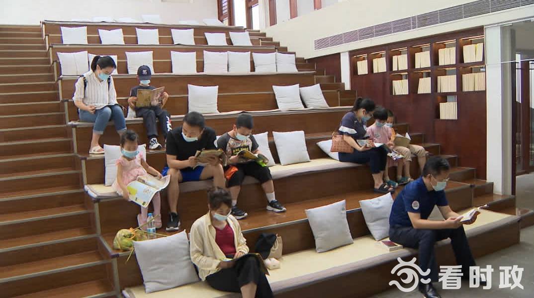 在相城冯梦龙书院的台阶阅读区内,几位家长带着孩子正在阅读。以收藏为核心,融读书、藏书、刻书、文化教育于一体的书院,用多种形式带给市民游客新奇的体验。