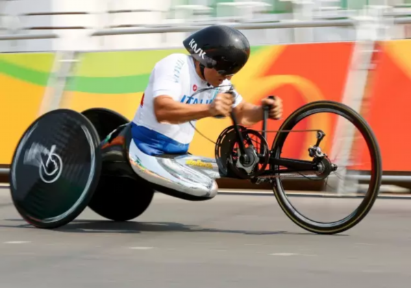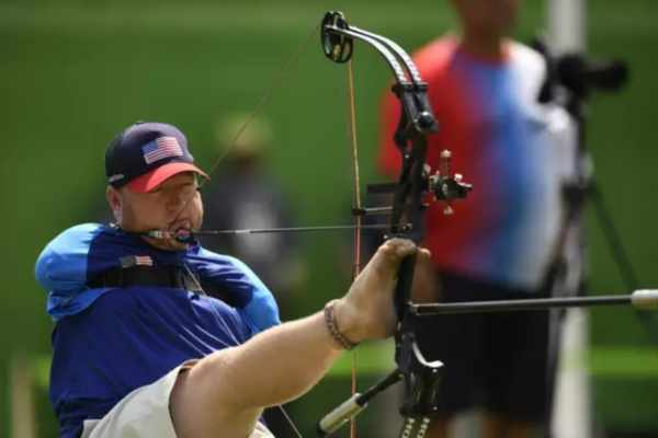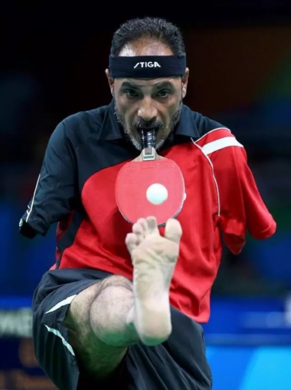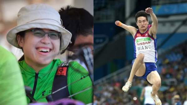 左图为女子轮椅射箭运动员周佳敏,右图为男子肢残田径运动员王浩