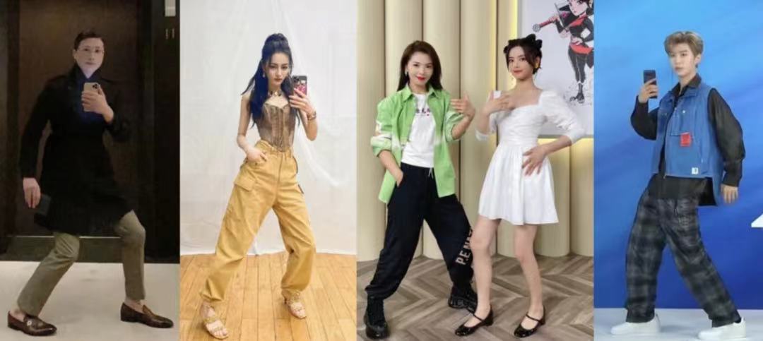 仔细分析可以看出,这则视频是精心顺应网络时代的猎奇而设计的。男主角徐勤根的语气腔调和扮相都很奇怪,精心打扮成油头粉面的样子,发型是不常见的二八分,更诡异的是他的拍照姿势,两腿迈开一步距离,膝盖弯曲,一手持手机对镜自拍,这个姿势果然是一大“爆点”,得到网友的关注和模仿,并称之为“人类高质量拍照姿势”。一些网友摆出同样的姿势拍照并@徐勤根,甚至杨超越、刘涛、迪丽热巴等艺人也下场模仿,在微博拍了相同姿势的照片,并使用了“高质量”等关键词。