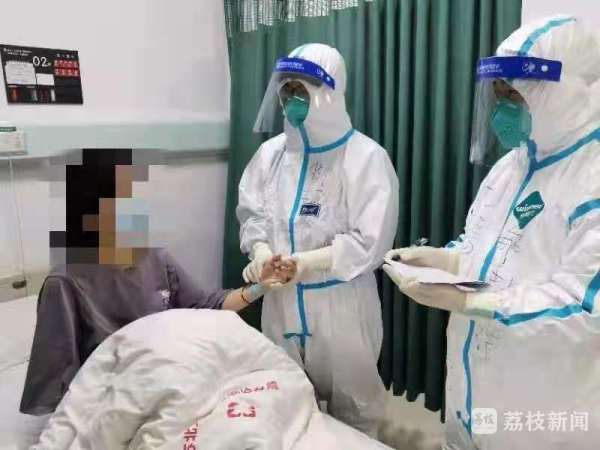每天早上,江苏支援扬州新冠肺炎救治中医医疗队队员,江苏省中医院呼吸与危重症医学科李磊副主任中医师和兄弟医院队员一起来到病房查房。