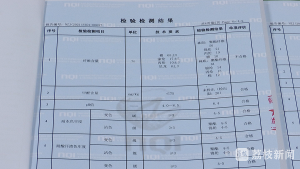 南京市产品质量监督检验院户外中心高级工程师阎燕介绍,纤维含量不合格主要体现在三方面,一个是纤维名称标注不正确,第二个是允差超出了范围,第三个是有含量虚标的现象。比如标注棉含量65%,但是实际检测出来棉含量只有10%左右,还有一款产品标注有再生纤维素纤维50.96%,但是实际检测出来没有这种纤维。