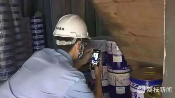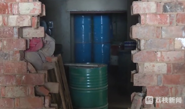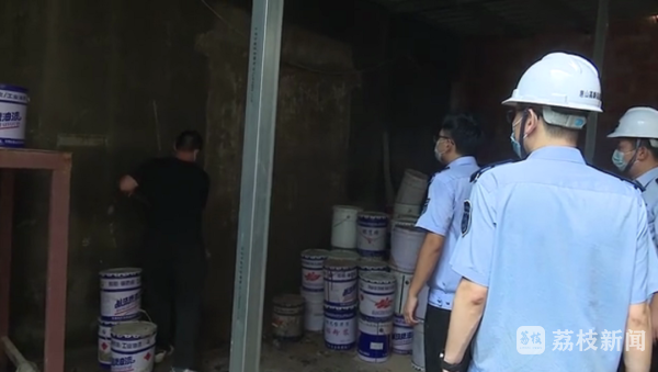 现场共破墙12处,发现在暗室中藏匿了约196吨化工原料和成品,主要是油漆涂料,疑似非法生产设备点4处,在排查中还发现一台柴油发电机,疑似企业偷偷自发电用于生产。涉事企业无锡市新华防腐材料厂有限公司位于洛社镇华圻村,原本是一家从事油漆涂料制造、加工的化工生产企业。