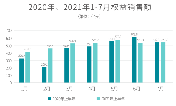 据中指研究院统计,2021年1-7月业绩排名中有21家房企超千亿,TOP100房企销售额均值为794.7亿元;中间阵营加速奔跑,200-300亿企业增速最快;此外,TOP100门槛值196.7亿,同比增长40.6%。