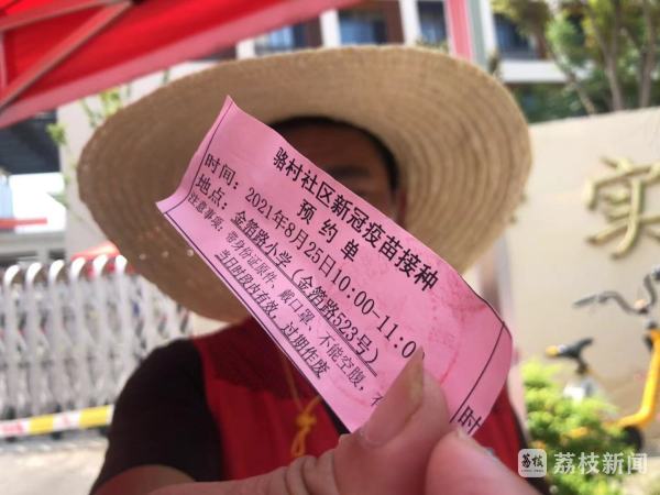 今天上午,记者来到南京江宁东山街道金箔路接种点,在工作人员和志愿者的引导下,居民自觉排队。这个时段是东山街道骆村社区专场,前来的接种的居民手中都有一张的红色预约单,上面详细标注接种的针次、地点和时间。市民桂先生之前工作忙,一直没接种,这次社区主动通知他们,所以今天就特地请假来接种。