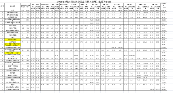 我苏网讯 从扬州市商务局获悉,截至8月25日下午4点,扬州主城区重点监测的大型批发市场和超市生活必需品营业额1576.06万元,环比下降5.35%。