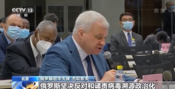 俄罗斯驻华大使 杰尼索夫:俄罗斯坚决反对和谴责病毒溯源政治化,我们需要的是倡导多边主义,开展客观透明的溯源合作。在溯源过程中必须抛弃偏见,只有采用科学的方法,才能得出可信的结论。
