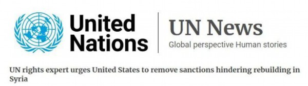 联合国人权专家去年12月底就曾警告,制裁侵犯了叙利亚民众的人权,呼吁美国解除可能阻碍叙利亚重建的单边制裁。