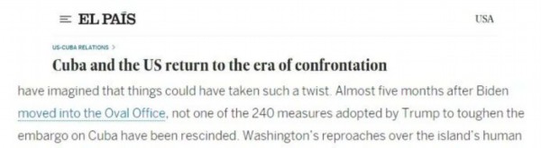 上月,全球超过400名各界人士联名发表公开信呼吁拜登取消特朗普时期设立的对古巴封锁措施。有美媒评论称,拜登对其前任对古巴政策的错误继承就连美国的盟友们也不愿支持了。