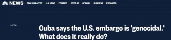 △美国全国广播公司(NBC):古巴指责美国对古禁运是“种族灭绝”。