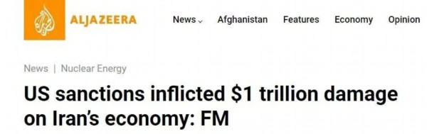 △卡塔尔半岛电视台:伊朗外长扎里夫称,美国单边制裁给伊朗经济造成了至少1万亿美元的损失。