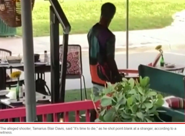 据目击者和警方介绍,22岁的塔玛瑞斯·布莱尔·戴维斯(Tamarius Blair Davis)来自乔治亚州诺克罗斯市。周二晚上,他在吸食了一种名为“迷幻蘑菇”的毒品后,近距离向21岁的达斯汀·韦克菲尔德(Dustin Wakefield)开枪,然后在用餐的观众面前跳起了舞。
