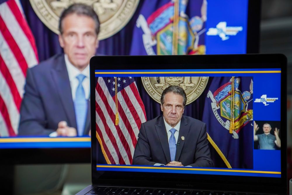 这是8月10日在美国纽约拍摄的时任纽约州州长安德鲁·科莫发表讲话的视频画面。由于受到多名女性指控性骚扰并面临州议会弹劾,科莫10日宣布辞职,并将于两周后离任。(新华社记者王迎摄)
