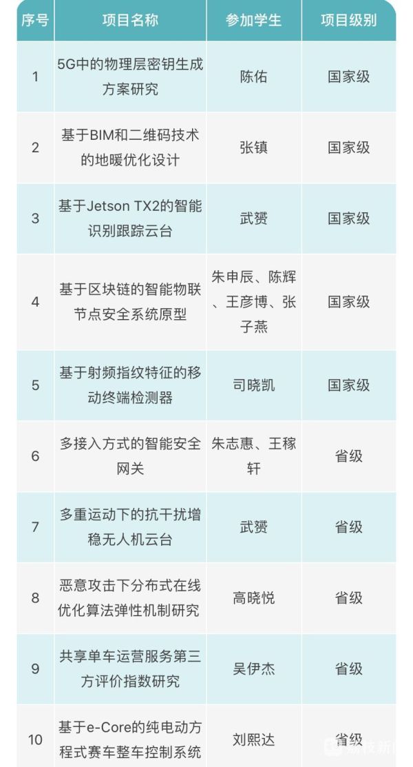 网安学子在课余积极加入各个老师的课题组,将理论与实践相结合,在前沿的科研项目中实现对知识的掌握与应用。该届同学中8人次参加国家级项目5项,16人次参加省级项目11项,49人次参加校级项目28项。