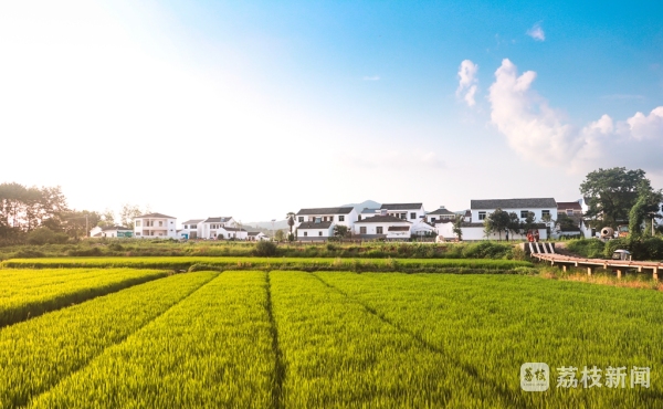 初秋时节,江苏句容的乡村田园呈现出迷人的色彩,白墙青瓦的民居、青黄相渐的稻田,延绵起伏的青山,在蓝天白云的映衬下构成了一幅充满诗意的山水田园画卷。